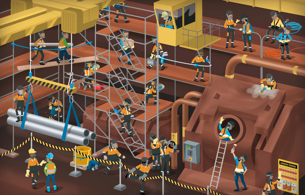 Those Illustrations were part of a bigger series depicting various dangerous situations on building and working sites, I was asked to collaborate and help finishing the illustrations which were already in the planning/sketching phase.
