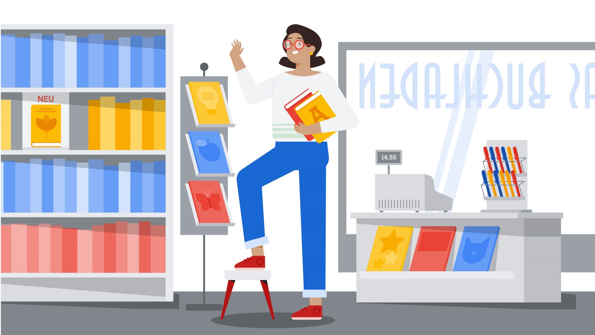 I had the pleasure of crafting several illustrations for a video about Google My Business. We follow the delightful journey of a small-town librarian and her experience with the service.